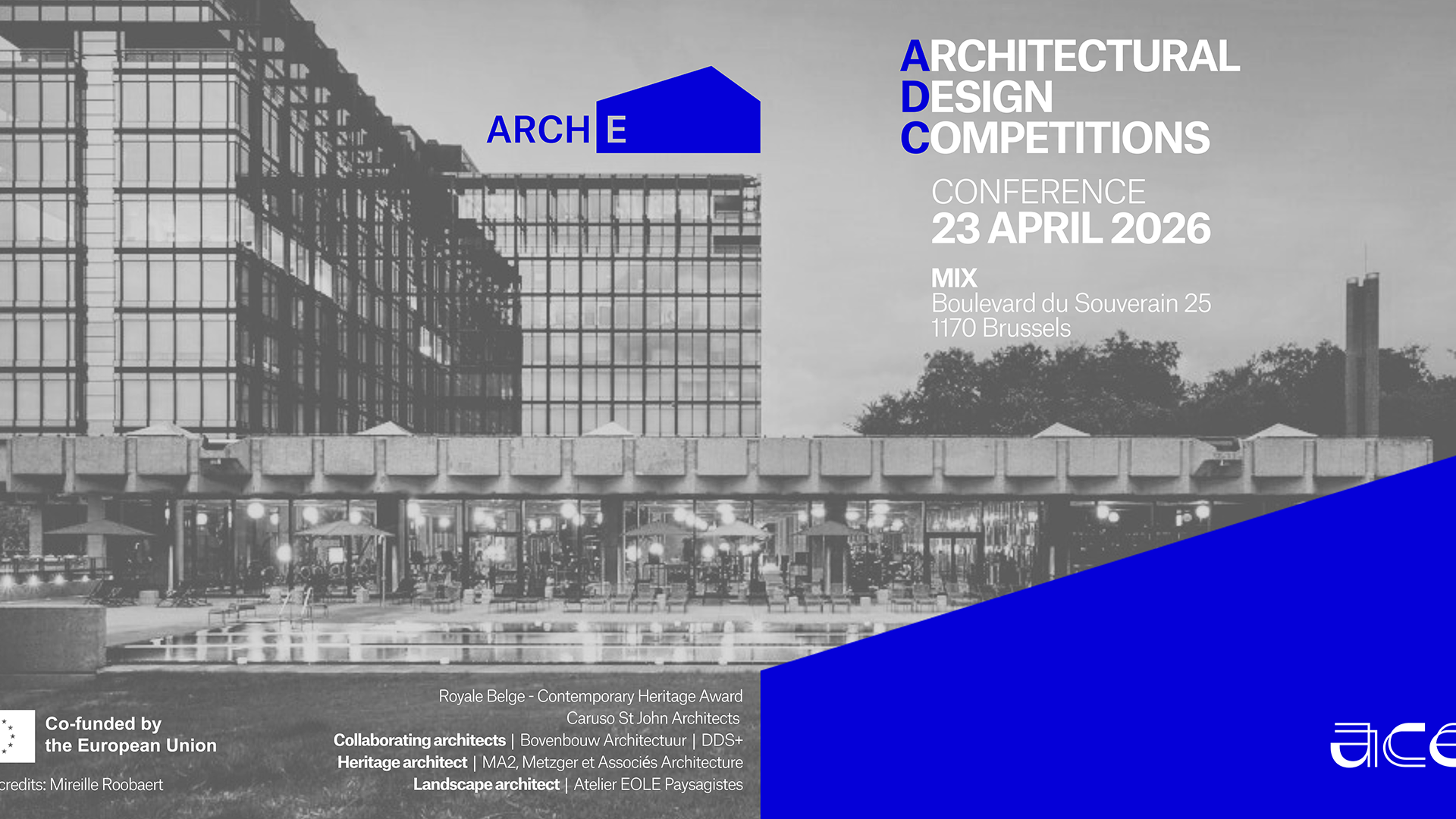 Konzorcij ARCH-E in Svet arhitektov Evrope (ACE) 23.aprila 2026 v Bruslju organizirata skupno konferenco. Posvečena je arhitekturnim natečajem (Architectural Design Competitions – ADC). Dogodek bo osredotočen na vlogo natečajev pri spodbujanju kakovosti in inovacij v arhitekturi ter njihov prispevek k razvoju visoke “Baukultur” in ekonomsko najučinkovitejših arhitekturnih rešitev.